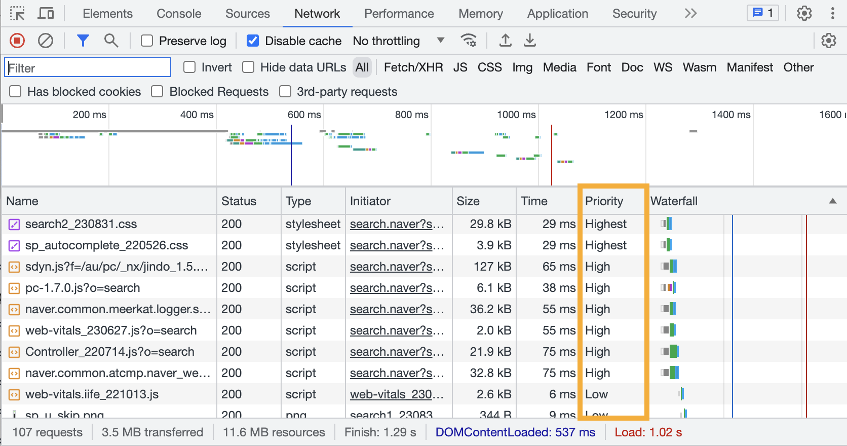 리소스 우선순위 (Chrome)