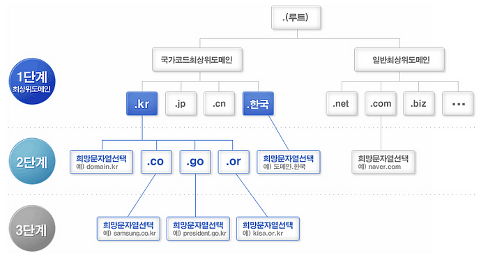 도메인 체계로 구분된 최상위 도메인은 대표적으로 아래로 분류된다.