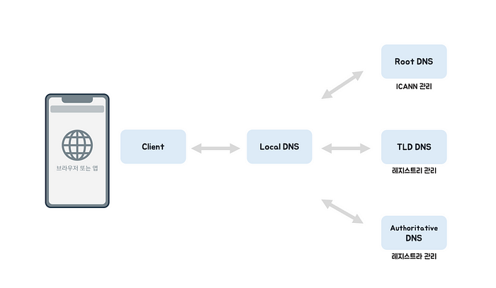 - 루트 DNS 서버에게 하위 계층에 해당되는 TLD 부터, 레지스트리에서 관리하는 네임서버까지 도메인에 대한 정보를 요청하게 되고, 이 과정을 토대로 요청 도메인에 대한 주소 정보를 전달 받는다.