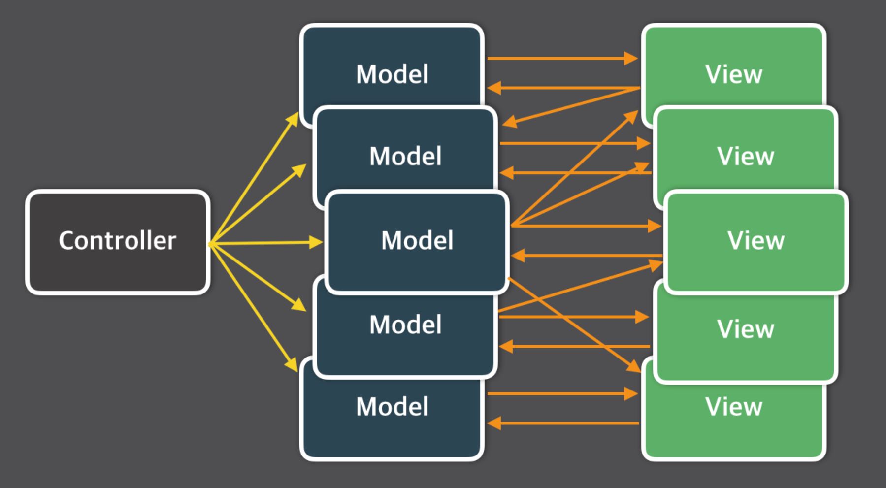 복잡한 대규모 프로그램의 경우 다수의 뷰와 모델이 컨트롤러를 통해 연결되기 때문에 컨트롤러가 불필요하게 커지는 현상이 발생한다. 이러한 이유로 현대에 많이들 들어본 MVP, MVVM, Flux, Redux 등을 생각해볼 수 있다. 그들은 무엇인지 간단히 알아보자.