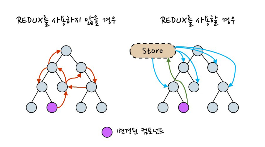 Redux는 Flux의 아이디어를 구현하지만 완전히 다른 방식으로 구현하는 라이브러리이다. Flux 패턴처럼 단방향으로 흐르기 때문에 데이터의 흐름을 예측하기 쉽다. 그래서 관리하기도 훨씬 쉽다. 특히 함수형 프로그래밍을 따르기 때문에 데이터가 불변하여 예측하기도 쉽고 이전 상태로 되돌리기도 쉽다.