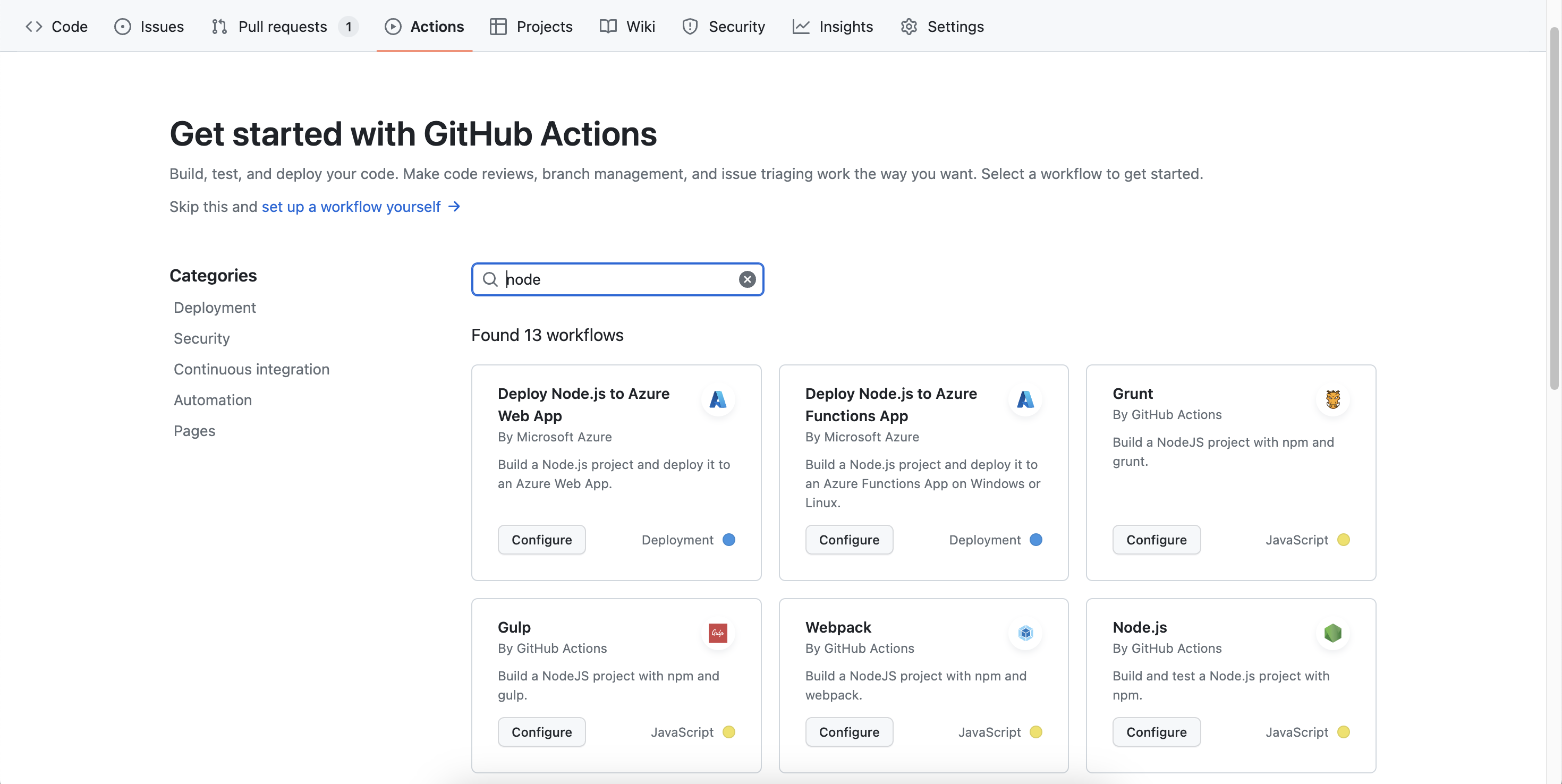 You can create a continuous integration (CI) workflow to build and test your Node.js project.