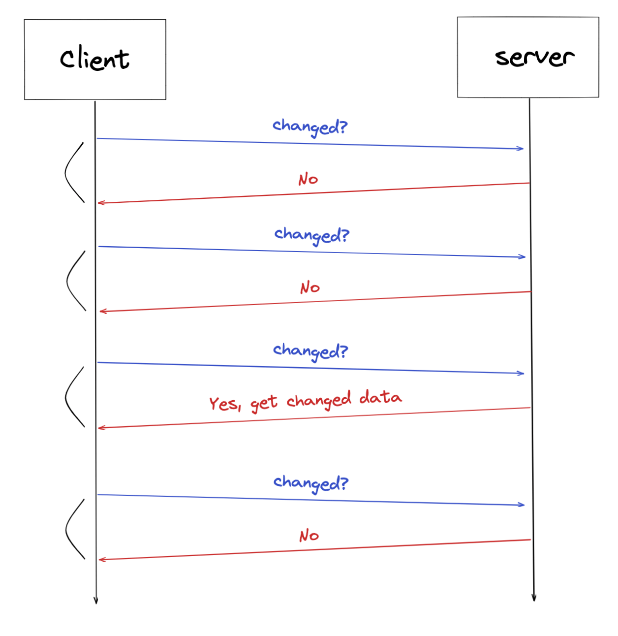 즉, 폴링의 주기가 짧으면 서버의 성능에 부담이 간다. 정보가 변하지 않을 경우 불필요한 응답이 많아질 것이고 오버헤드가 발생할 수 있다. 또한, 주기가 길면 실시간성이 떨어진다.
