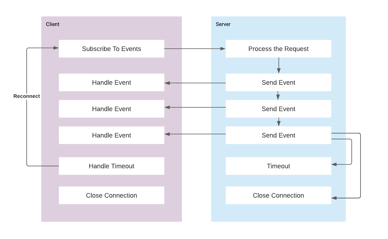 SSE는 클라이언트가 HTTP 연결을 통해 서버로부터 자동 업데이트를 수신할 수 있도록 하는 Server Push 기술이며, 클라이언트 연결이 한 번 설정되면 서버에서 변경이 발생할 때마다 클라이언트로 데이터를 전송할 수 있다. 이는 응답마다 다시 요청을 해야하는 Long Polling 방식보다 대부분의 케이스에서 효율적이다.