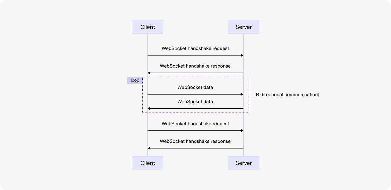 클라이언트와 서버 모두 오랫동안 persistent connection을 통해 동시에 데이터를 보내고 받을 수 있다. 이런 유형의 통신은 *HTTP 폴링보다 오버헤드가 적기 때문에 애플리케이션에 실시간 기능에 대한 여러 이점을 제공한다.