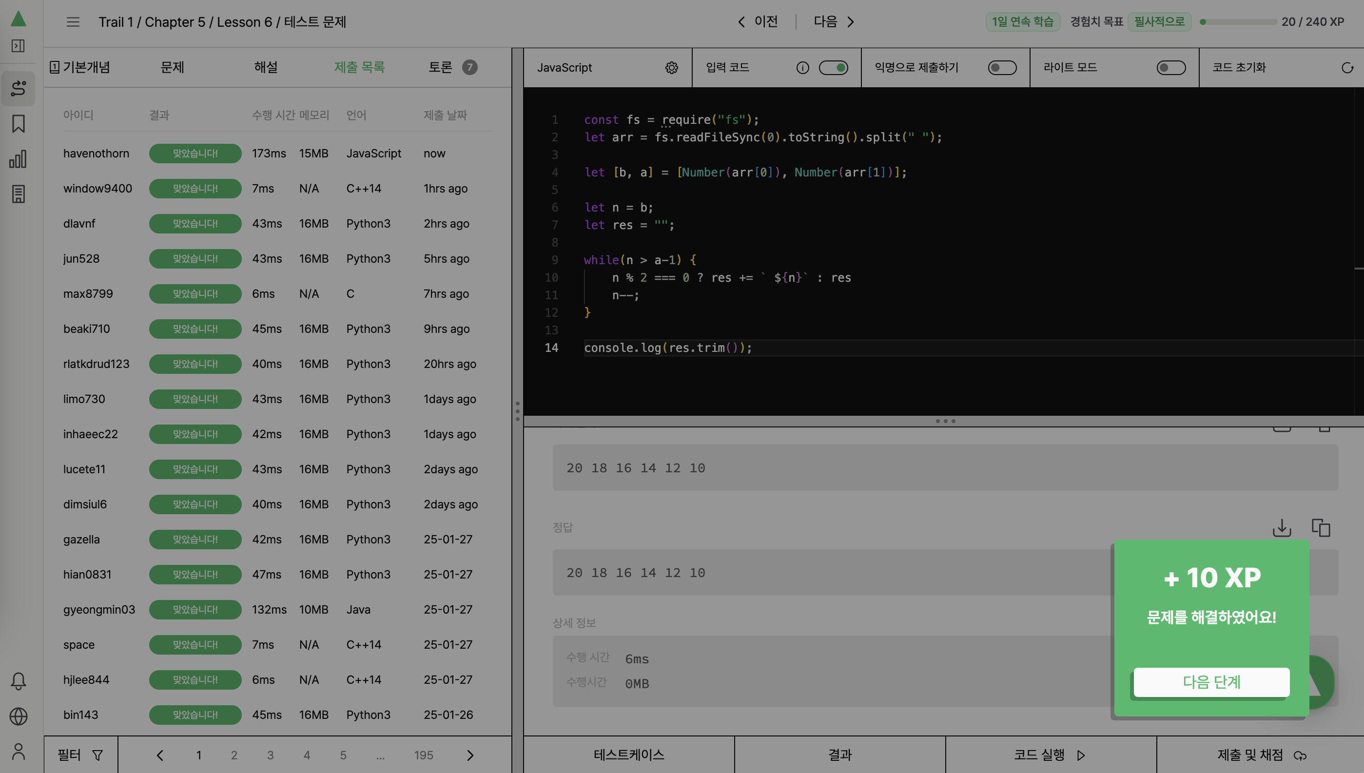 다른 것보다 문제의 기초를 확실히 잘 다져주는 게 느껴졌다. 타 플랫폼의 경우 이미 알고 있다는 전제하에 시작을 하는 것이기 때문에 스스로 어떤 방향을 두고 써야 할지 망망대해에서 풀어헤쳐가는 느낌이라면 코드 트리는 단계별로 심화시켜서 충분히 응용할 수 있도록 해준다.