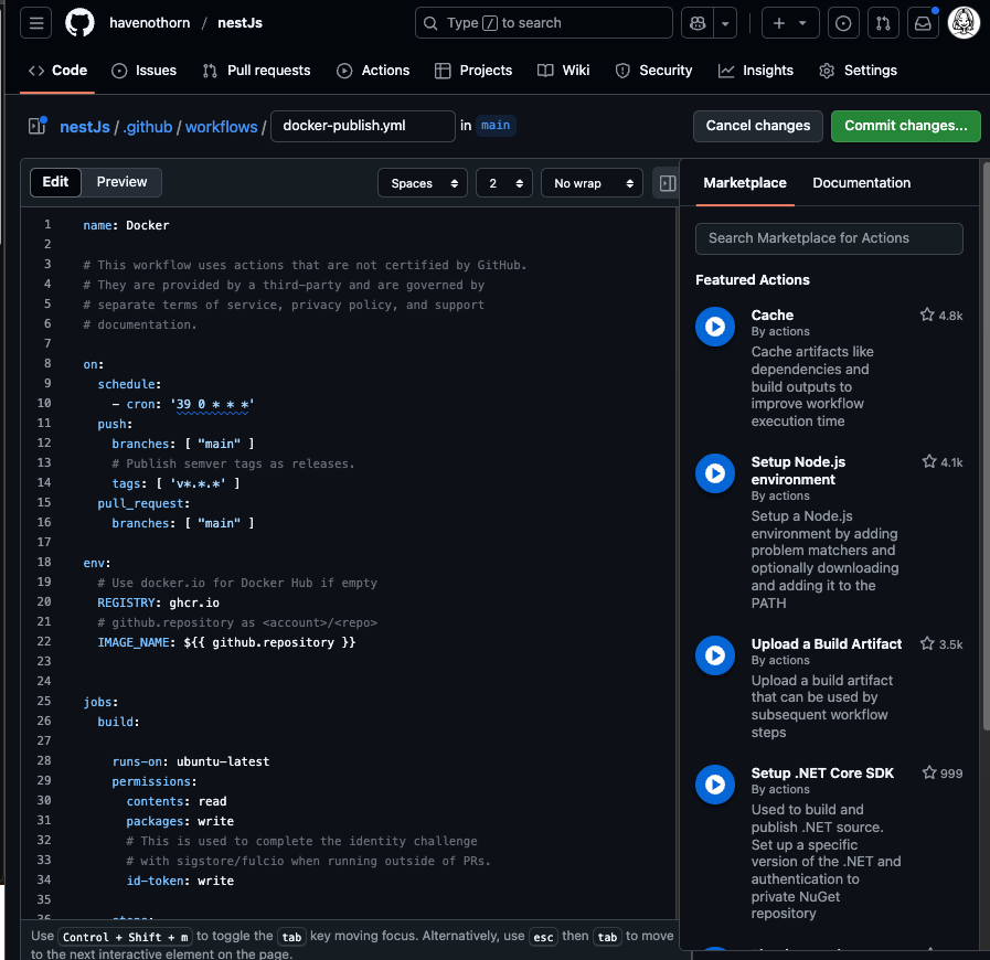 우선, Actions에 Docker image 관련 config가 존재해서 해당 config를 커스텀해도 좋다. 하지만 나는 수동으로 진행했다.