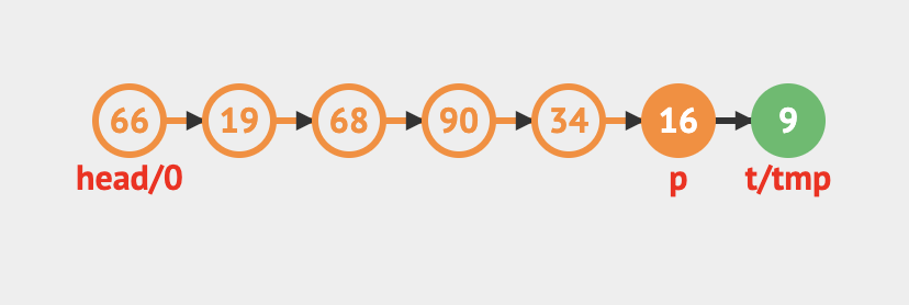 // 임시 변수 temp를 선언하고 head를 향하게 한다.