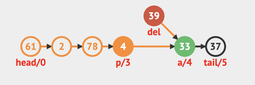 // 이전 노드의 next를 제거할 노드의 next로 설정하여 연결을 끊는다. [그림 5 참고]