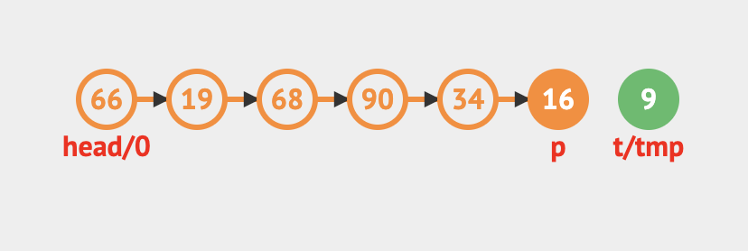 // 현재 head가 가리키는 노드를 temp에 저장한다.